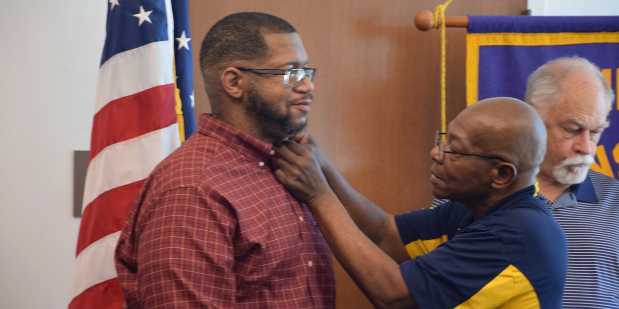 Lions Greg Brown, President Elijah Mitchell, Installing Officer, PDG Carl Nehlig